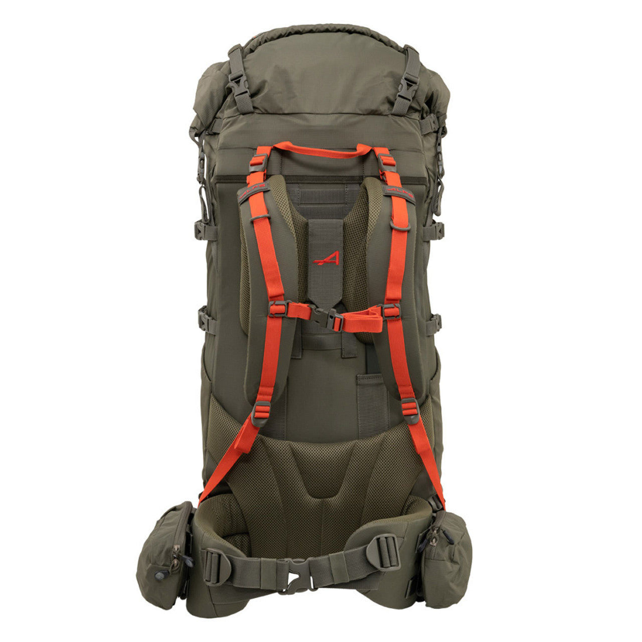 The ALPS Mountaineering Nomad is an innovative roll top pack design with an expandable volume main compartment. The Nomad can be expanded from a 65L pack all the way up to an 85L pack making it customizable for all of your backpacking adventures. The main compartment is easily accessible via a generous zippered opening. Its adjustable suspension system features 2 flat aluminum stays and adjusts to fit torso ranges from 16?22 inches. The removable waist belt features removable pockets for even further customization of the pack. The Nomad's stretch side pockets, side compression straps, extensive daisy chains and trekking pole loops provide additional gear storage and lashing points. A hydration pocket with two side outlet hydration ports and a built-in rain cover are both included. The Nomad is thoughtfully designed to be your perfect backpacking companion.