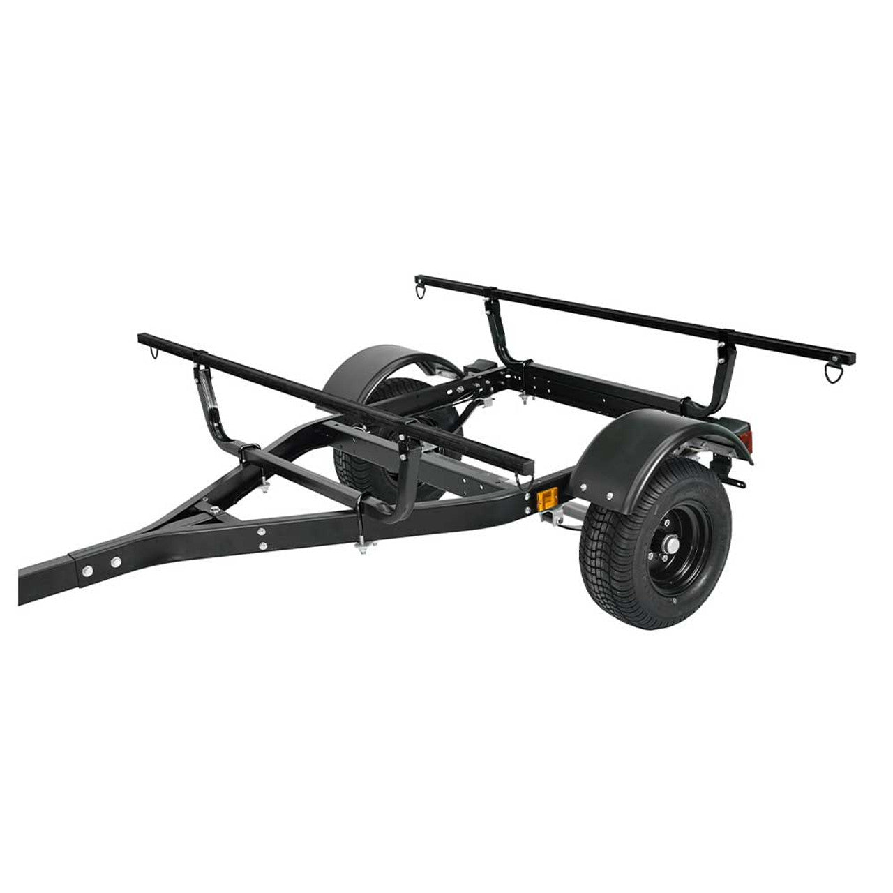 Now offered in a unique Pre Galvanized Frame with Black Powder Coat Finish the MicroSport™ Off-Road Trailer is a perfect blend of cost-effectiveness, excellence in craftsmanship, and dependable design. Each kit comprises of a sturdy reinforced steel tongue, LED submersible lighting that meets DOT standards, a pre-wired electrical system, pre-fitted chassis parts, 78" steel load bars, and large oversized pontoon wheels. With the use of common tools, assembly can be accomplished in around three to four hours. Backed by a Five-Year Warranty, proudly crafted in the United States.