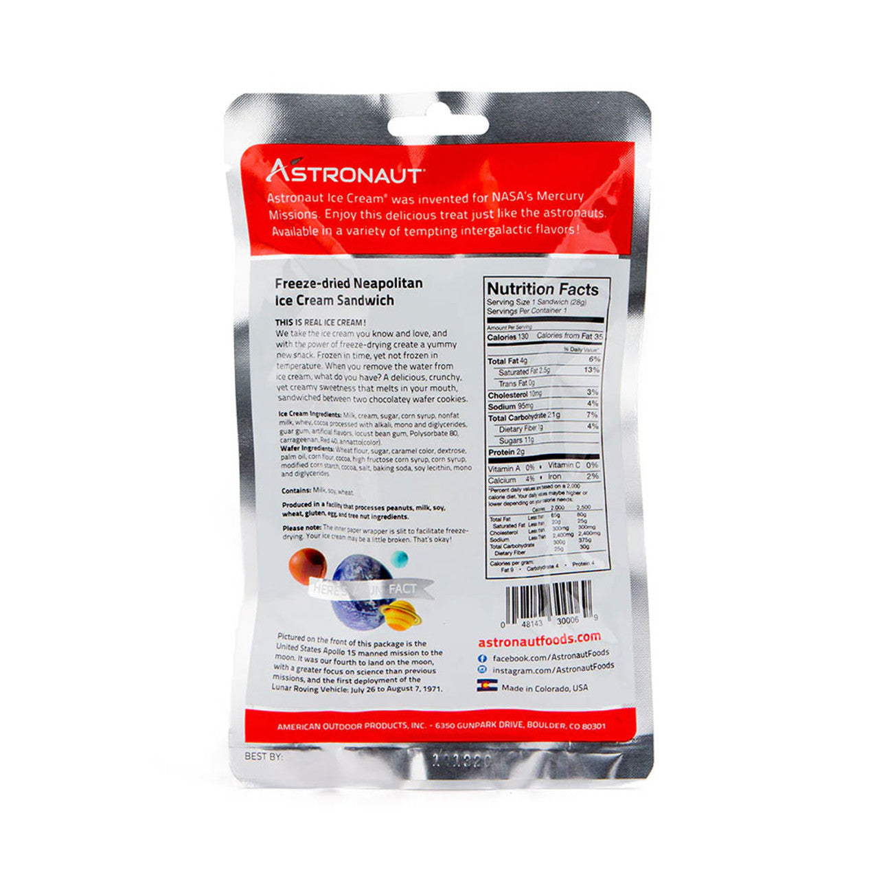The perfect sweet treat for your outdoor adventures. Enjoy the freeze-dried neapolitan ice cream sandwich.