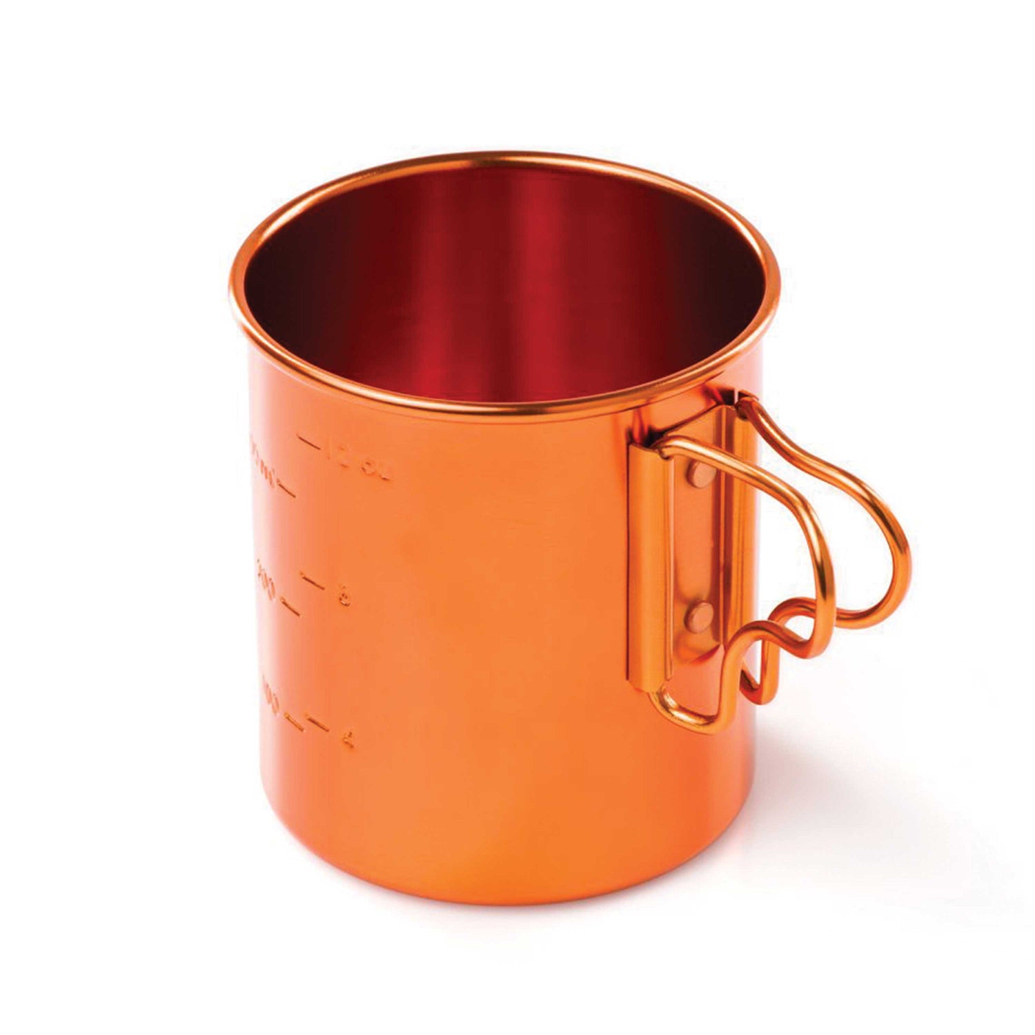 Hold your favorite beverage or measure out the ingredients for your next meal. The bright and lightweight 14 fl oz Bugaboo Cup belies strength and reliability. This ultra-lightweight camping and hiking cup made of high-grade aluminum features folding handles and stamped-in graduations.