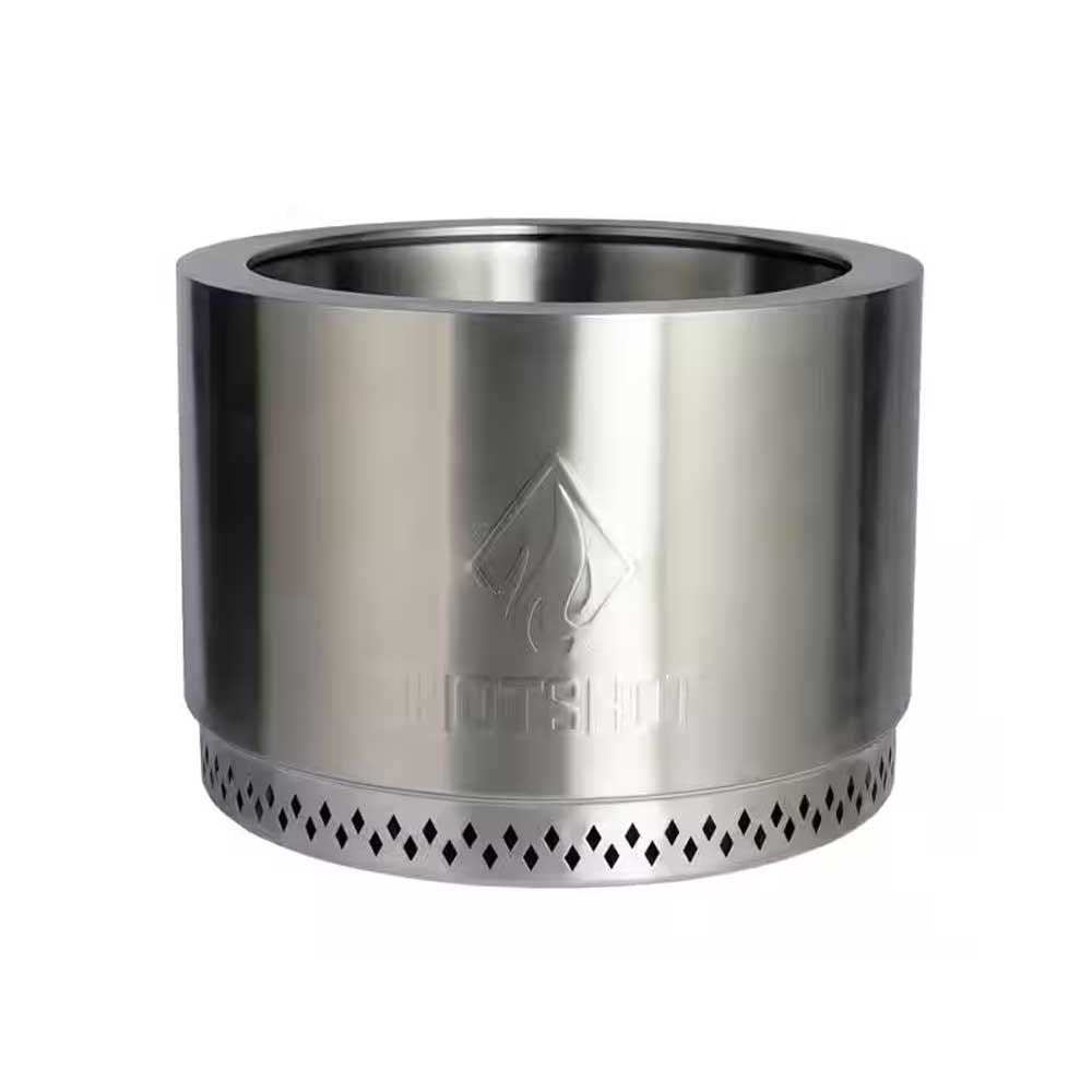 Meet the groundbreaking, easy to use, portable, outdoor, 304 stainless steel HotShot Explorer 19.5 in. round smokeless wood-burning fire pit. Experience the brand-new way to gather with family and friends and enjoy a wood bonfire without all the smoke. This advanced smokeless fire pit design uses intake vents in the metal fire pit stand to bring air into the fire pit, where the air is heated and rises into the double-insulated walls. The heated air is then fed back into the fire bowl, creating a secondary combustion. This new CleanAir Smokeless Technology removes up to 70% of the smoke when the wood level is kept below the top edge. Now you can enjoy the HotShot's super-charged heat with barely any smoke and ash. This smoke less portable fire pit is perfectly sized to take RV and car camping, glamping, to the beach, on picnics, to your family's outdoor sporting events - anywhere with a fire-safe surface. Or appreciate the benefits of the outdoor fire pit from the coziness of your own backyard. For best results and lowest smoke, burn dry, seasoned wood.