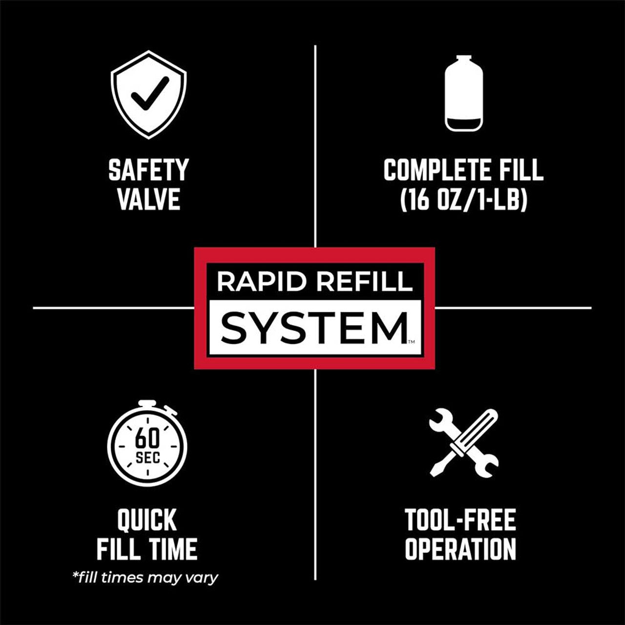 - TIME SAVINGS: The Mr. Heater Refillable 1 lb. / 16 oz. Propane Fuel Keg refills in approximately 60 seconds. Easy refill outdoors / backyards. Please watch the video for detailed instructions.