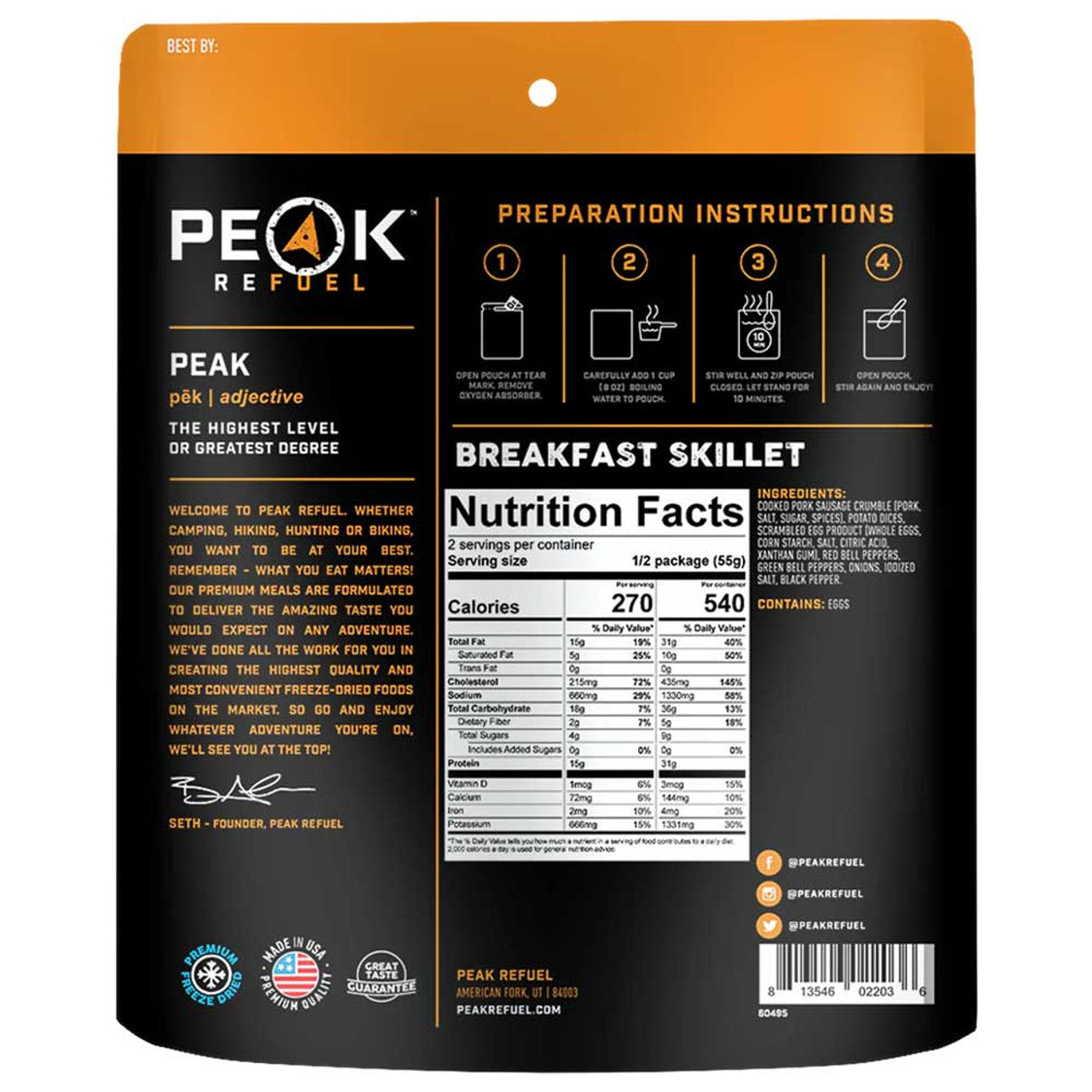Peak Refuel Breakfast Skillet is backordered and will ship as soon as it is back in stock.