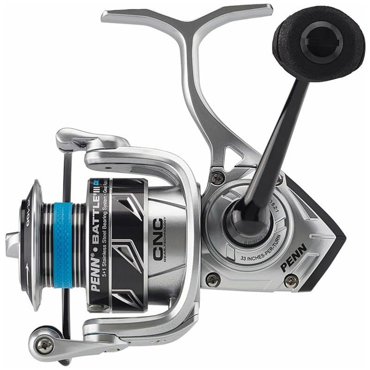 Penn Battle III DX Spinning Reels are built tough to withstand whatever the saltwater angler puts these reels through. The Battle III DX reels are more powerful than the previous Battle III spinning reels. Brass main gears are in every size along with an improved HT-100 drag system. Transfer more power through the gears to your big catch on the other end of the line with oversized EVA handle knobs.