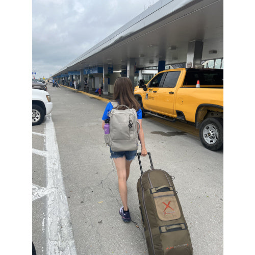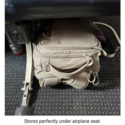 - Back panel's pass-through sleeve allows attachment to rolling luggage handles