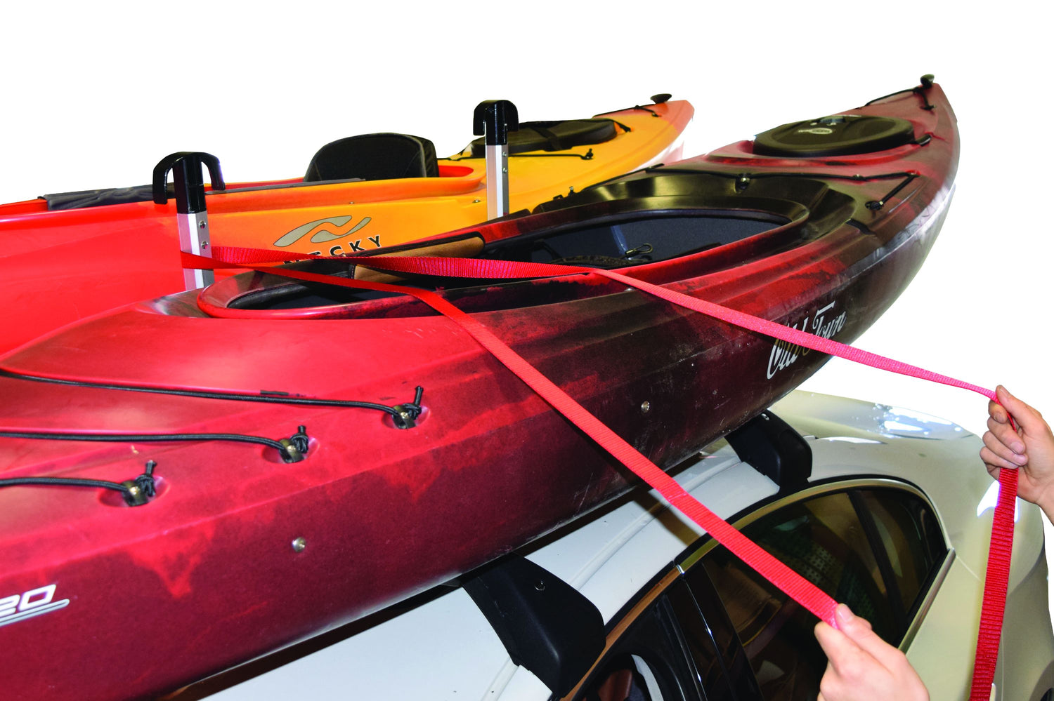 The Stax™ Pro2 is the combination of intelligent design, excellent workmanship, superior strength and affordable pricing. This two boat transport system delivers a safe and secure trip to the water and back and assures a great paddling experience. Features a fold-down frame design for low clearance and foam blocks to protect the kayaks from cross bar abrasion. Comes with all required straps, mounting hardware and safety lines to safely transport two kayaks.