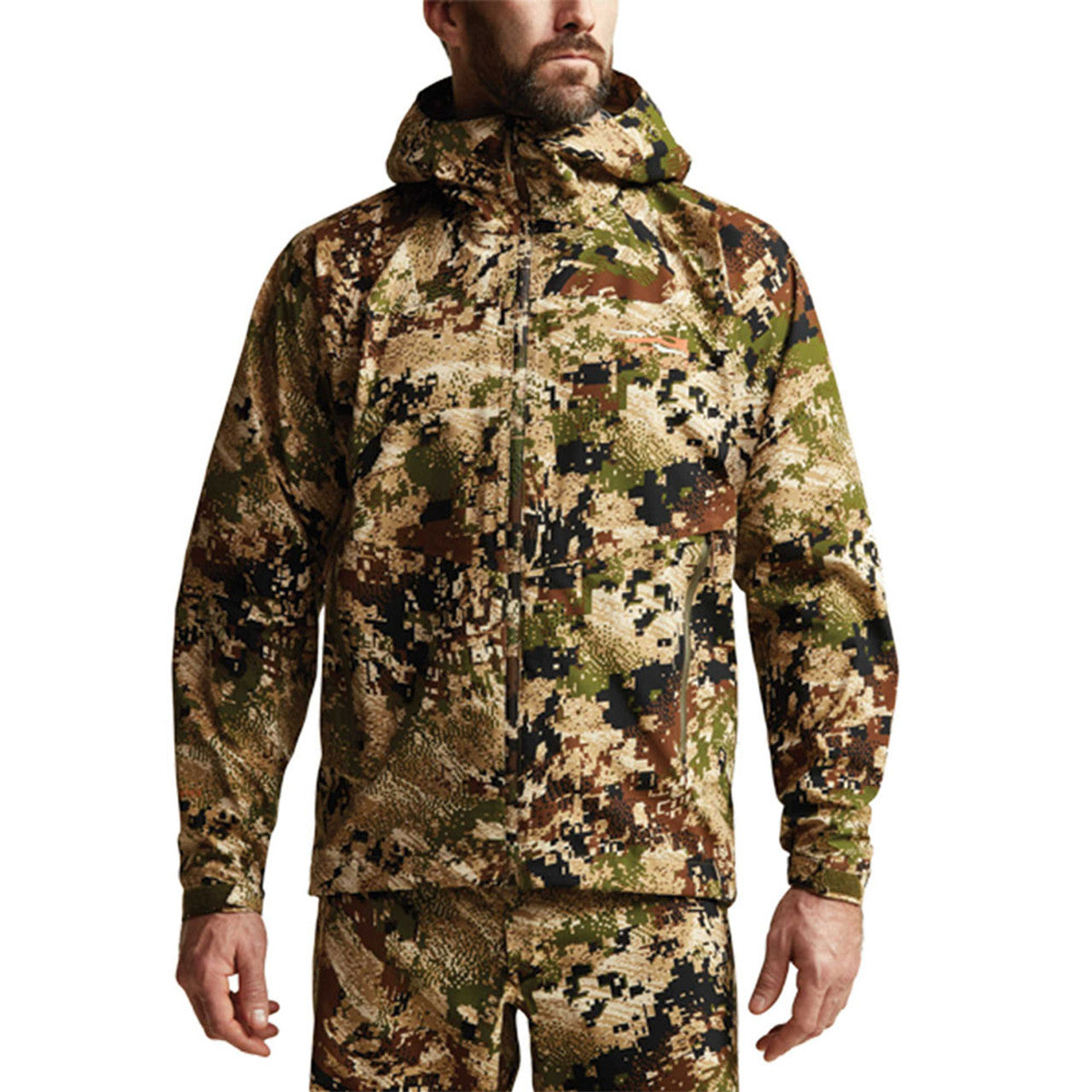 Sitka's 3-layer GORE-TEX Dew Point Jacket offers lightweight waterproof protection for volatile weather. Minimalist construction features include 20-denier nylon ripstop face with soft GORE C-KNIT backer technology for breathable comfort and packability, pit zips for expelling heat, micro-taped seams to reduce weight and zippered pockets that are accessible while wearing a pack belt and Mountain Optics Harness.