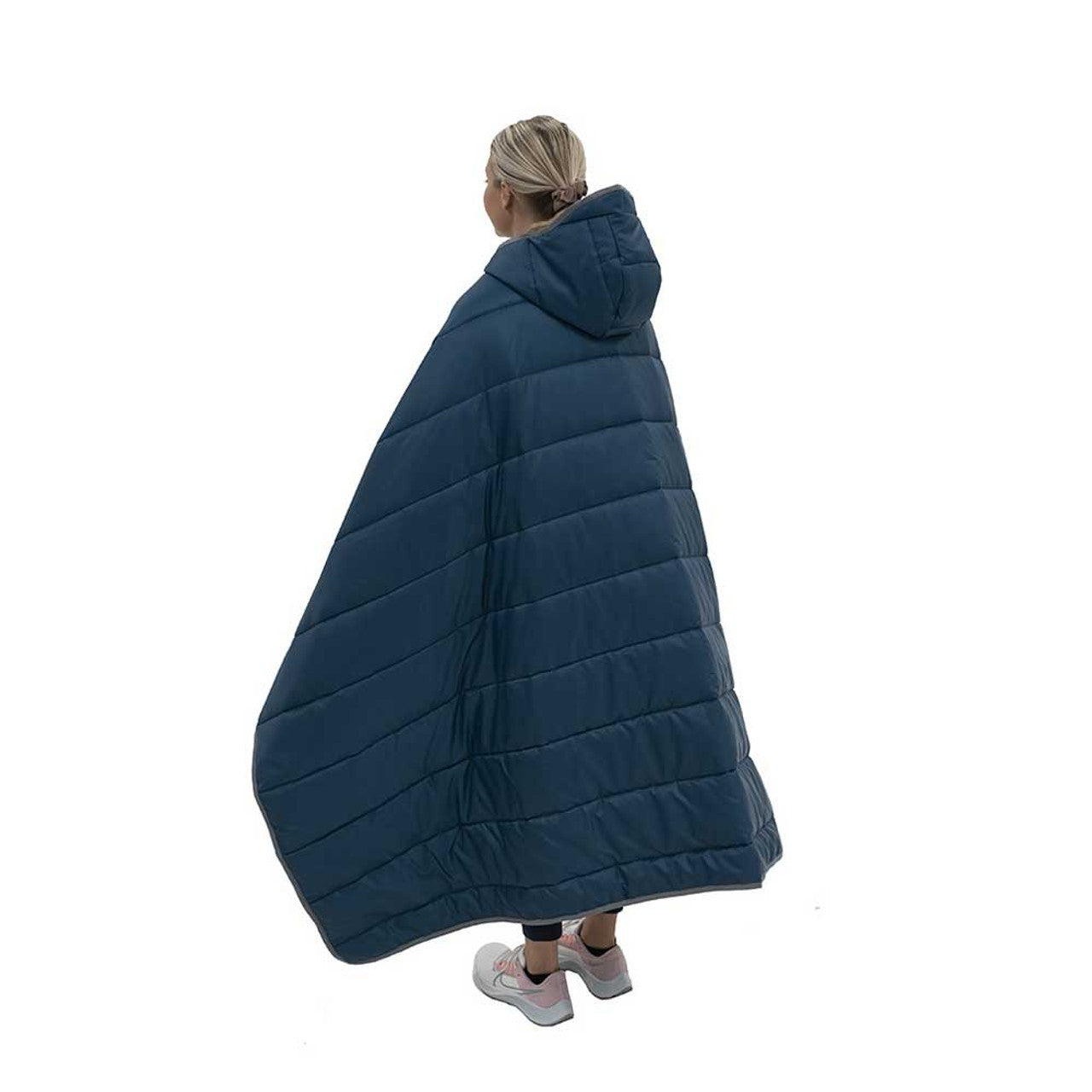 - Secure the wrap around your body with the adjustable snap closure to keep warm - or - open it up and lay it flat for use as a blanket