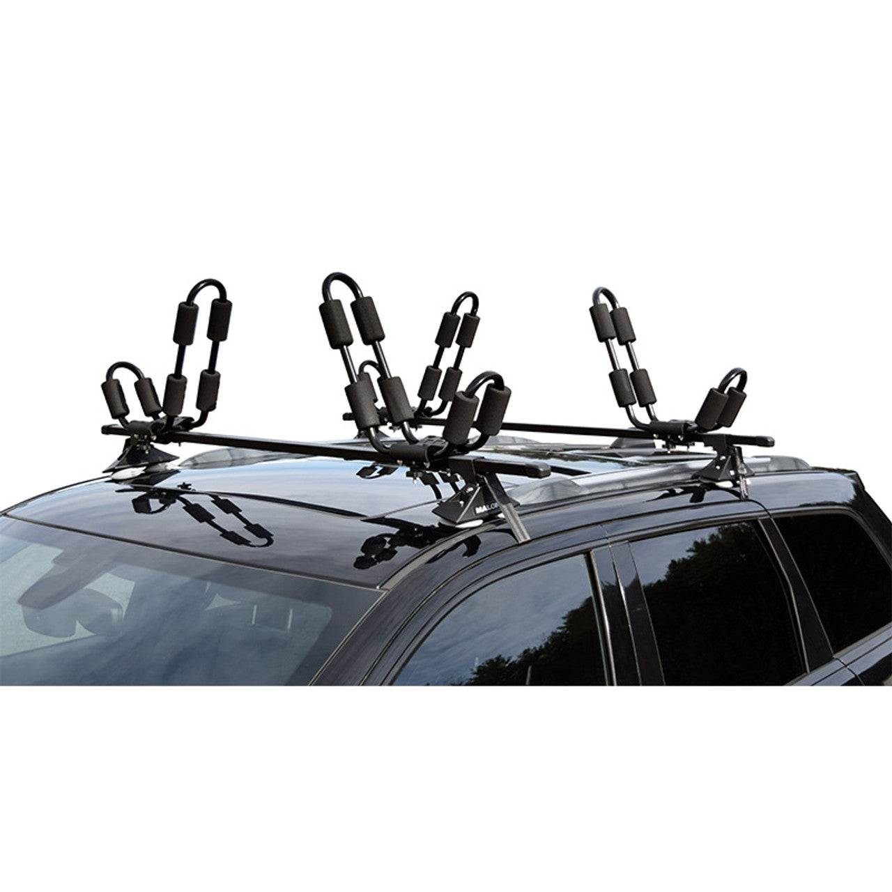The Malone 58" VersaRail with 2 J-Cradles bundle pack is perfect for transporting two kayaks on the roof of any flat-top vehicle. The VersaRail™ instantly transforms a bare roof into a functional and stable platform. Transport bikes, boats & storage systems, or oversized loads from the hardware store. Available here in a 58" length, these load bars come assembled and ready to install. Includes twin cup vacuum towers, 1.5" attachment straps and a Five Year Limited Warranty.